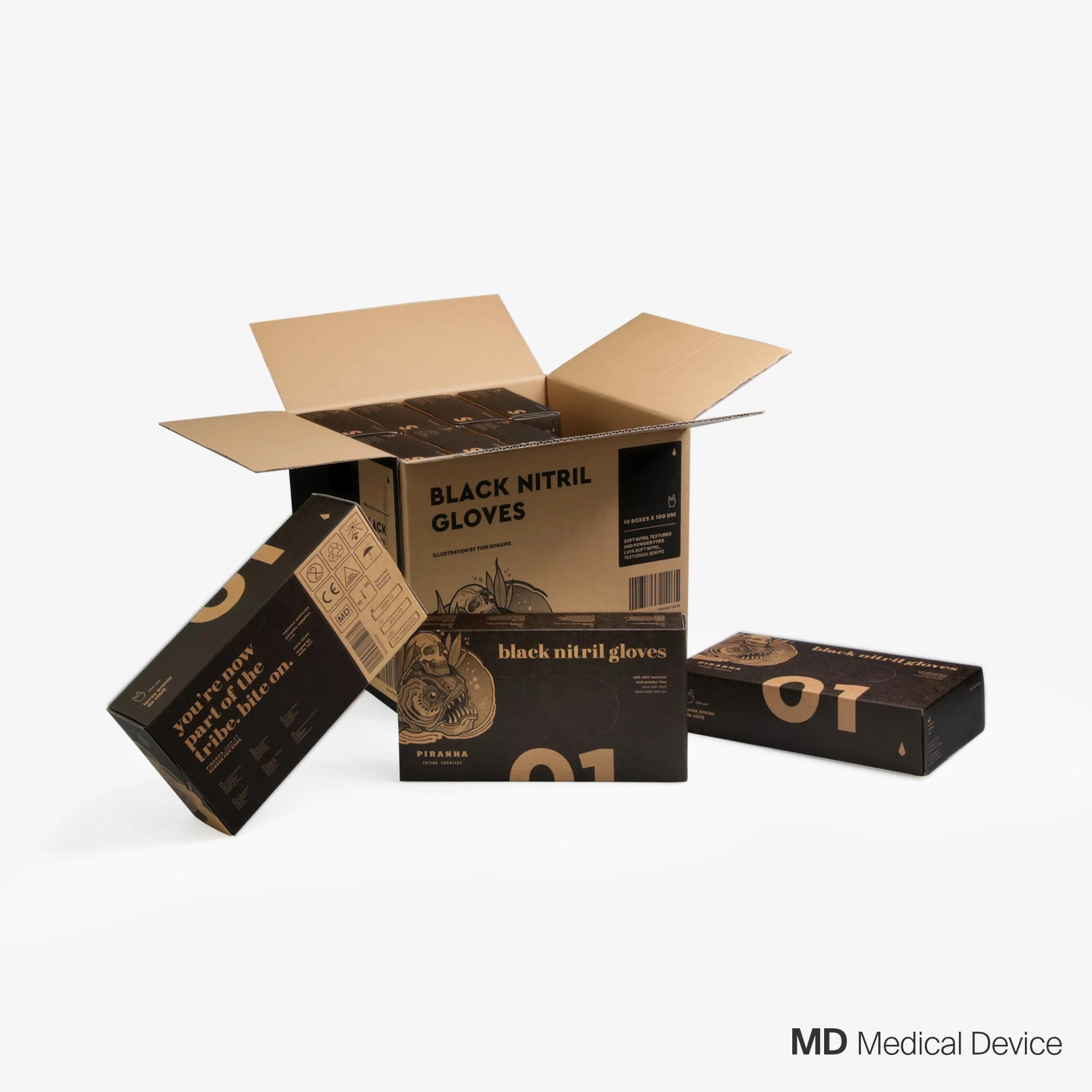 Piranhas versjon av den klassiske engangshansken i svart nitril har en lateksfri, pudderfri konstruksjon og gir grep, styrke og elastisitet med hver eneste hanske. De er perfekte for enhver prosedyre som krever håndbeskyttelse, og er et flott alternativ å hamstre i studioet. Velg ønsket størrelse. Hovedfunksjoner: Ambidekstrale nitrilhansker Lateksfri Pudderfri Strukturerte Hver eske inneholder 100 hansker. Tilgjengelig i XS/S/M/L